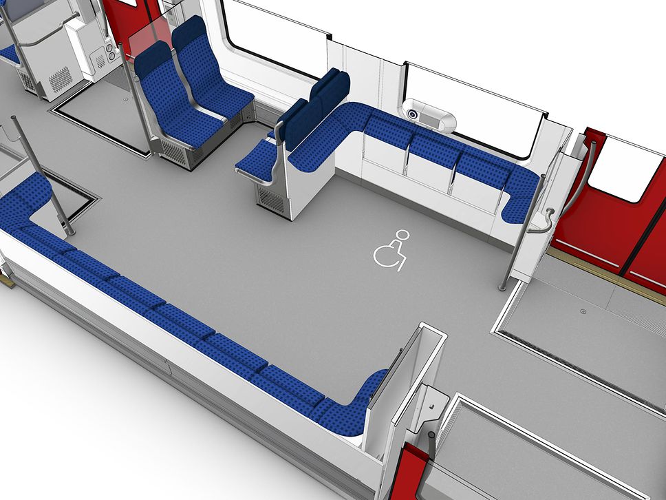 Auch bei den Mehrzweckabteilen vorne und hinten im Fahrzeug ermöglicht die veränderte Sitzplatzgestaltung für Rollstuhlfahrer und Kinderwagen einen erleichterten Zugang.