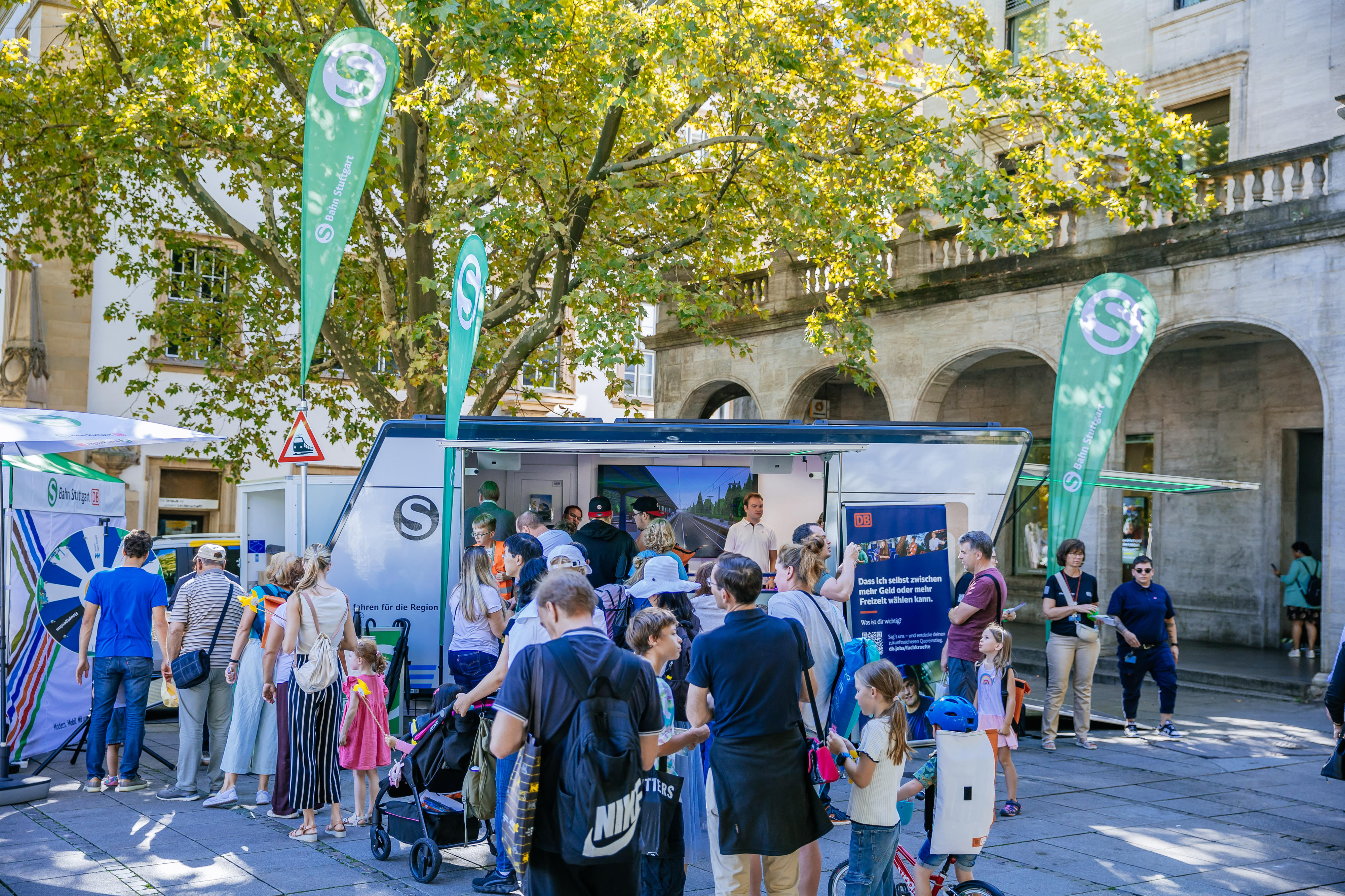 - Im S-Bahn-Infomobil mit Fahrsimulator konnten Gäste hautnah ausprobieren, wie es sich anfühlt, eine S-Bahn zu steuern. Außerdem informierten wir über die vielfältigen Berufsmöglichkeiten bei der S-Bahn Stuttgart. Für die kleinen Besucher gab es den beliebten Kinder-Lokführerschein.