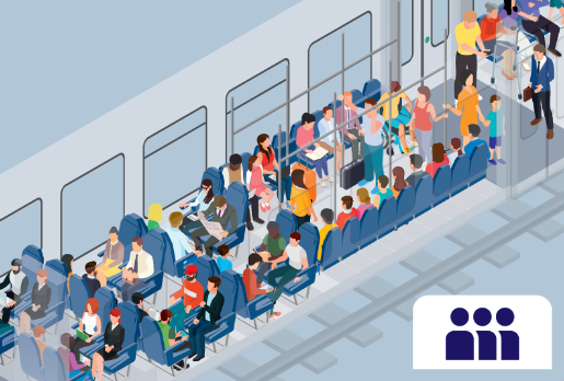 Hohe Auslastung: Die meisten Plätze sind besetzt und es wird schwierig hier bequem einen Platz zu finden. Du kannst natürlich trotzdem einsteigen, wenn allerdings angezeigt wird, dass ein anderer Wagen eine geringere Auslastung hat, empfehlen wir dir lieber da einzusteigen.