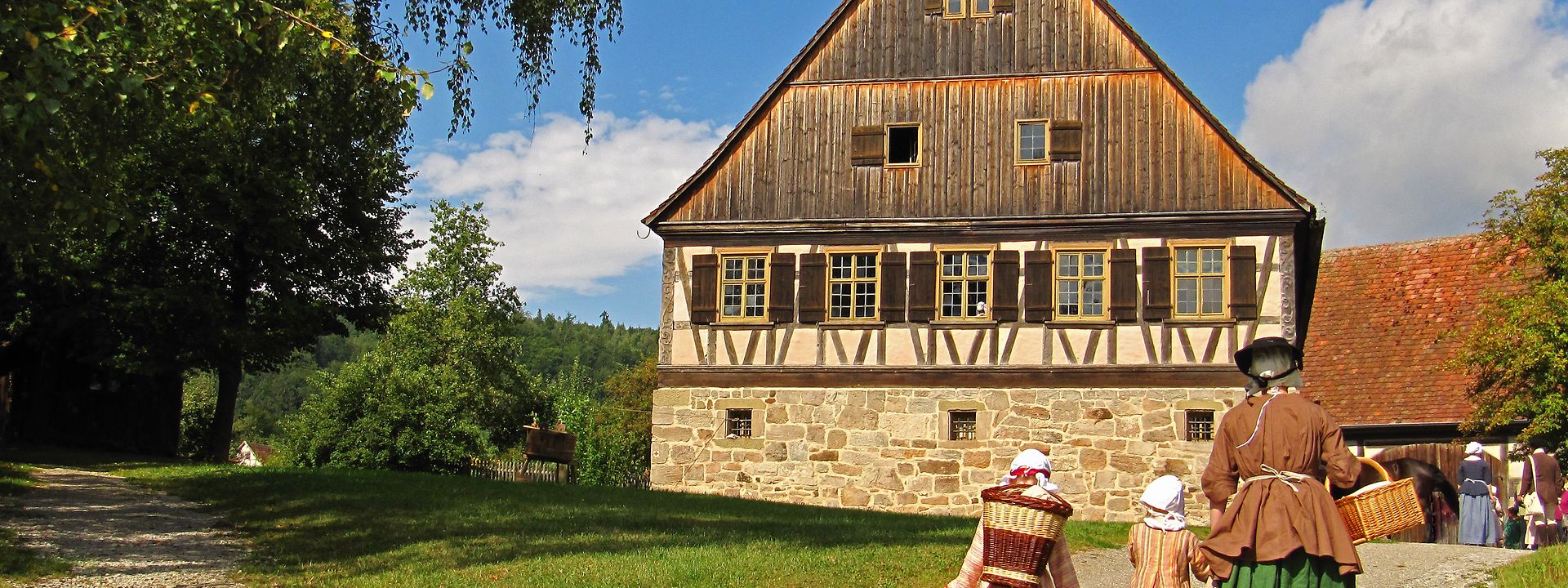 Inmitten herrlicher Streuobstwiesen, Felder und Gärten stehen 70 historische Gebäude aus verschiedenen Ortschaften der Region Württembergisch Franken, alle mit originalgetreuen Einrichtungen. Die ältesten Gebäude sind fast 500 Jahre alt. Bauernhöfe, Handwerkerhäuser, Werkstätten, Scheunen, Mühlen, dazu eine Kapelle, ein Schulhaus, ein Bahnhof und sogar ein Gefängnis. Sehr schnell taucht man ein in den Alltag von Bauern, Handwerkern, aber auch der Armen und Outlaws. Und begreift, wie sich die Menschen das karge Leben damals immer ein wenig leichter und bequemer machten.