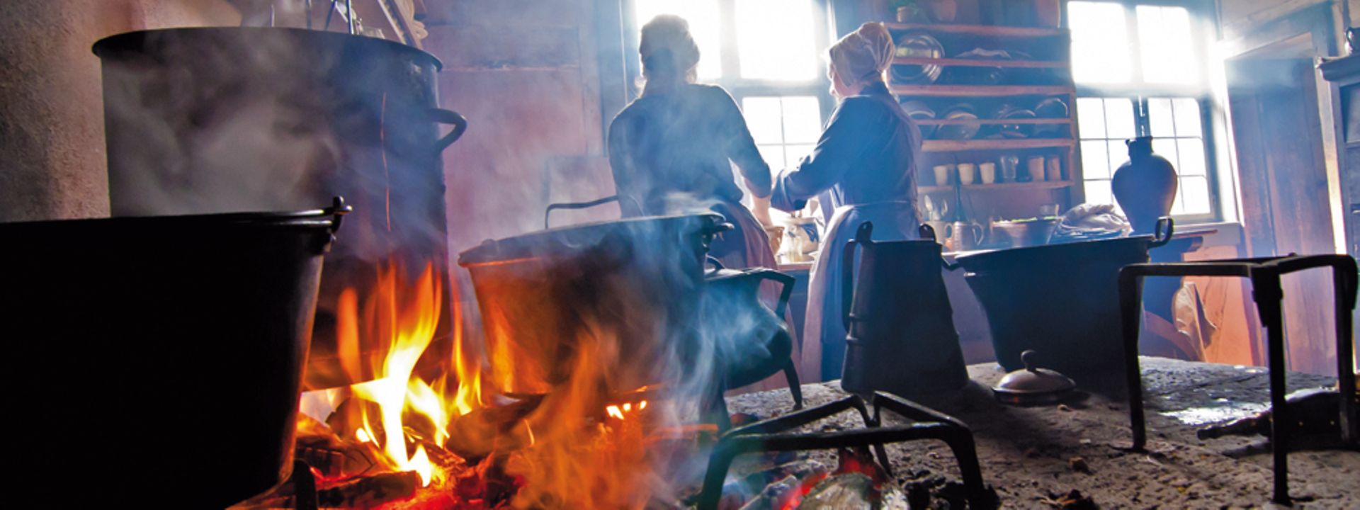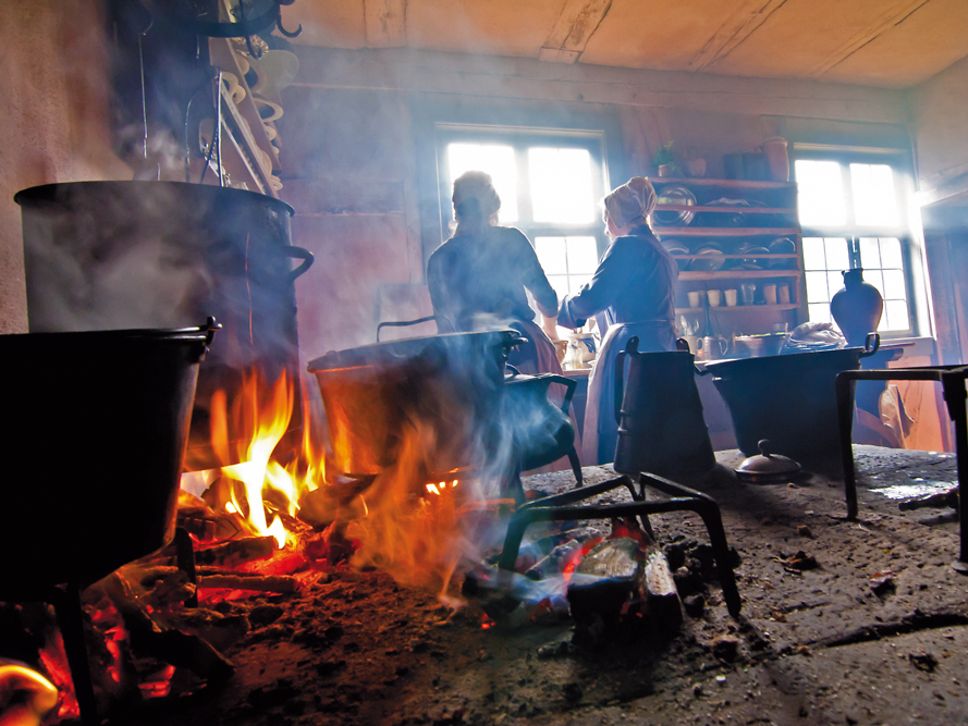 Jeden Sonntag um 11 Uhr gibt es „Führung für alle“. Dazu muss man sich gar nicht anmelden. Außerdem gibt es regelmäßige Wildkräuterführungen und heiß begehrte Schmiedekurse. Auf jeden Fall lange vorher buchen! Wem das Schmieden zu laut ist, kann auch andere Dinge lernen: Stuhlgeflechte flechten, Salben mischen, Seife sieden. Für Gläubige gibt es eine stimmungsvolle Kirche im Grünen, für Gourmets das Kochen in alten Küchen, für Kunstbeflissene die Commedia dell’arte und für Familien den Märchentag.