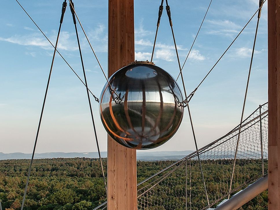 Der Turm wird getragen von 8 Masten aus Lärchenholz aus der Region. Auf 10, 20 und 30 Meter ist je eine Aussichtsplattform. Je höher man kommt, desto gigantischer ist der Ausblick. Ein Panorama auf den Landkreis Böblingen, die Wälder des Naturpark Schönbuch, das Schwäbische Streuobstparadies und die Flächen des Korn- und Heckengäu. Bei sehr guter Sicht sieht man im Südwesten sogar den Feldberg, den höchsten Berg des Schwarzwalds. Der Feldberg ist 105 Kilometern weit weg und man kann hinsehen!