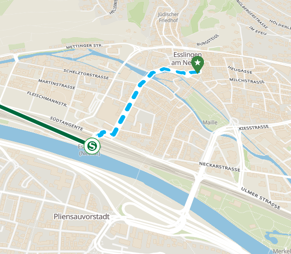 Die Aussichten sind gut! Eine Gabelwanderung mit Weitblick. Vom Stuttgart Hbf zum Bahnhof Fellbach oder Rommelshausen, von beiden Bahnhöfen fährt ein Bus nach Stetten. Dann loswanden, erstmal zur quadratisch praktischen Y-Burg, dann zum Kernenturm, mit toller Aussicht auf Stuttgart, danach zur Aussicht von der Grabkapelle, schließlich zur Aussicht von der Katharinenlinde und endlich zur Burg Esslingen und in die Altstadt. Von dort 10 min zum Bahnhof Esslingen und in einer Viertelstunde mit S-Bahn oder Regionalzug zurück zum Hbf Stuttgart. Zur Rückfahrt von Esslingen:
