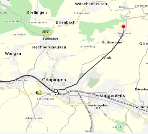 Von Stuttgart Hbf nur 1 Stunde mit 1 Umstieg entfernt. Am Bahnhof Göppingen weiter mit Buslinie 13 in Richtung Hohenstaufen/Dorfplatz aussteigen. Von da sind es nur wenige Meter zum Startpunkt der Tour zur Felsformation der Spielburg. Auch mit Kindern gut geeignet.