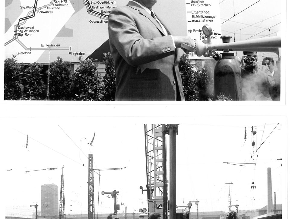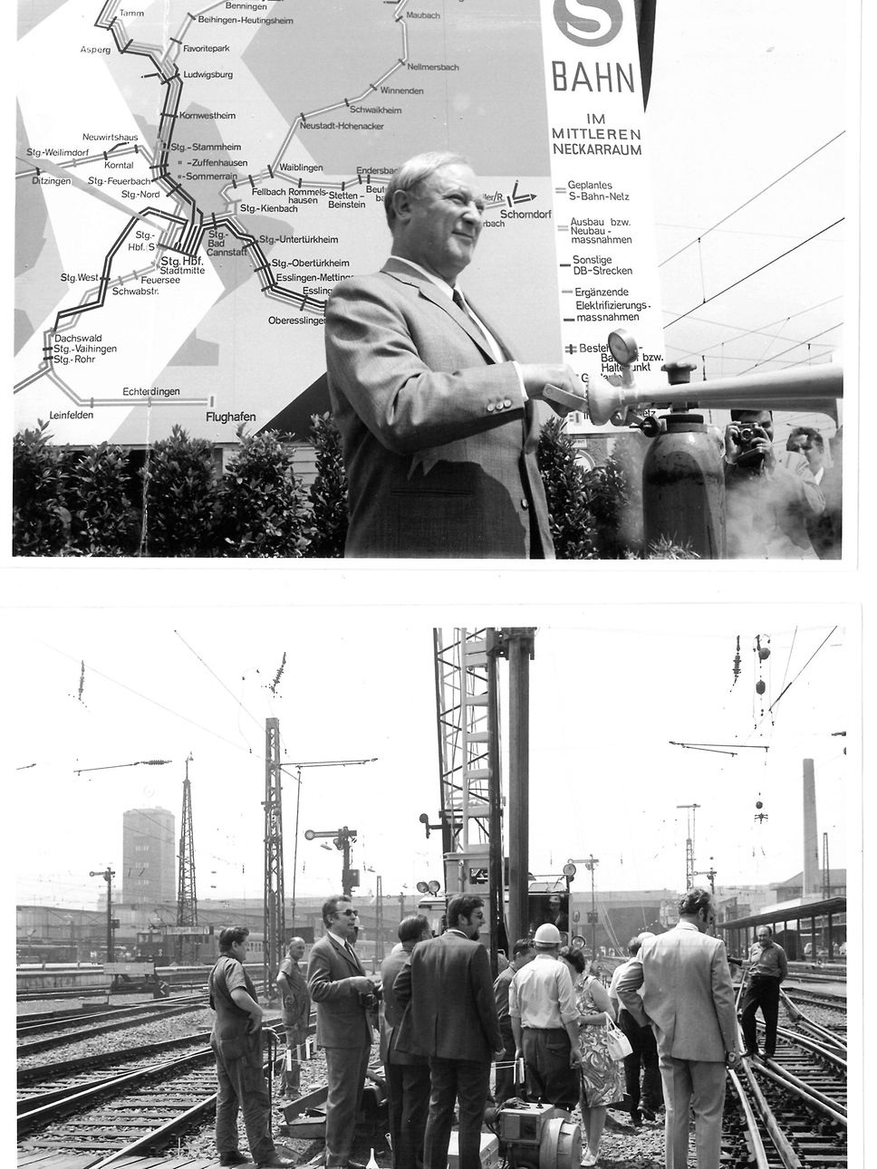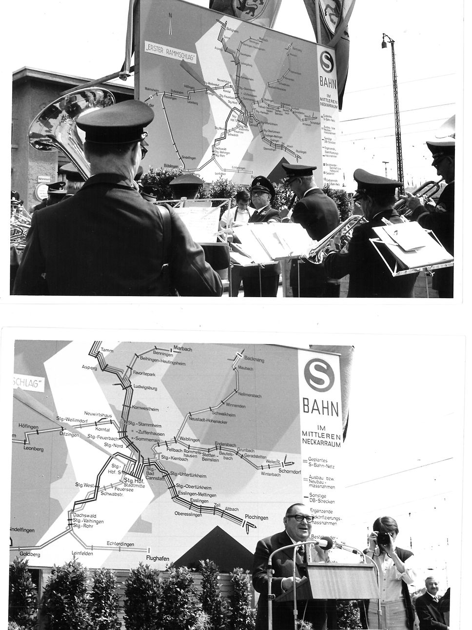 5. Juli 1971: "Erster Rammschlag" für die S-Bahn im Mittleren Neckarraum.Zu Gast als Redner sind Bundesverkehrsminister und Präsident der Bundesbahndirektion Stuttgart.